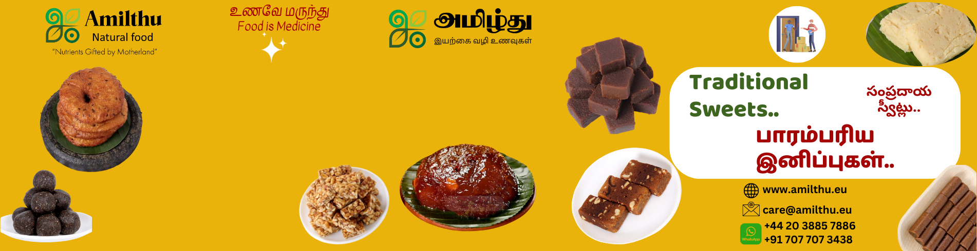 Product Native: Unique Flavorful Fruit Halwa from the traditional town of Nellai, TamilNadu (India) Specialty: With grand combination of Nuts, Fruits and Dates this Fruit Halwa would be the most flavorful halwa. Combining the original nuts, fruits and dates is a challenge and by making it in right proportion this Fruit Halwa proves to be the best of its kind. Ingredients: Dry Fruits, Almonds, Cashew...Regular price €8.00Regular priceUnit price / perSale price €8.00Granulated Sesame Pearl Millet Roll – பொடி குருணை கம்பு எள்ளு உருண்டை - 200gms